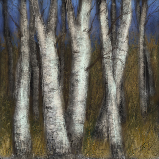 3 Birken “Licht und Schatten” iPad - Gemälde 1 x 1 m 2013