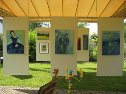 Am Tag des offenen Ateliers fand auch einiges bei schönstem Wetter im Freien statt. Hier im Atelier von Martina Furk.
