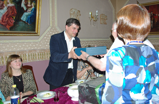 Begrüßung der Abordnung von LohmART durch den Bürgermeister von Zarow und im Anschluss Überreichung des Gastgeschenkes.